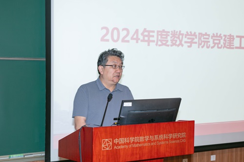 武艰对数学院今年党建工作重点提出要求,数学院要以习近平新时代中国特色社会主义思想为指导,全面贯彻落实党的二十大和二十届二中全会精神,深入学习贯彻习近平总书记关于党的建设的重要思想,深入学习贯彻习近平总书记关于科技创新的重要论述和对中国科学院的重要指示批示精神,坚持和加强党对科技工作的全面领导,不断增强基层党组织政治功能和组织功能,推动党建工作与科技创新深度融合,把党建工作成效转化为加快抢占科技制高点的强大动力,为数学院改革创新发展提供坚强保证。