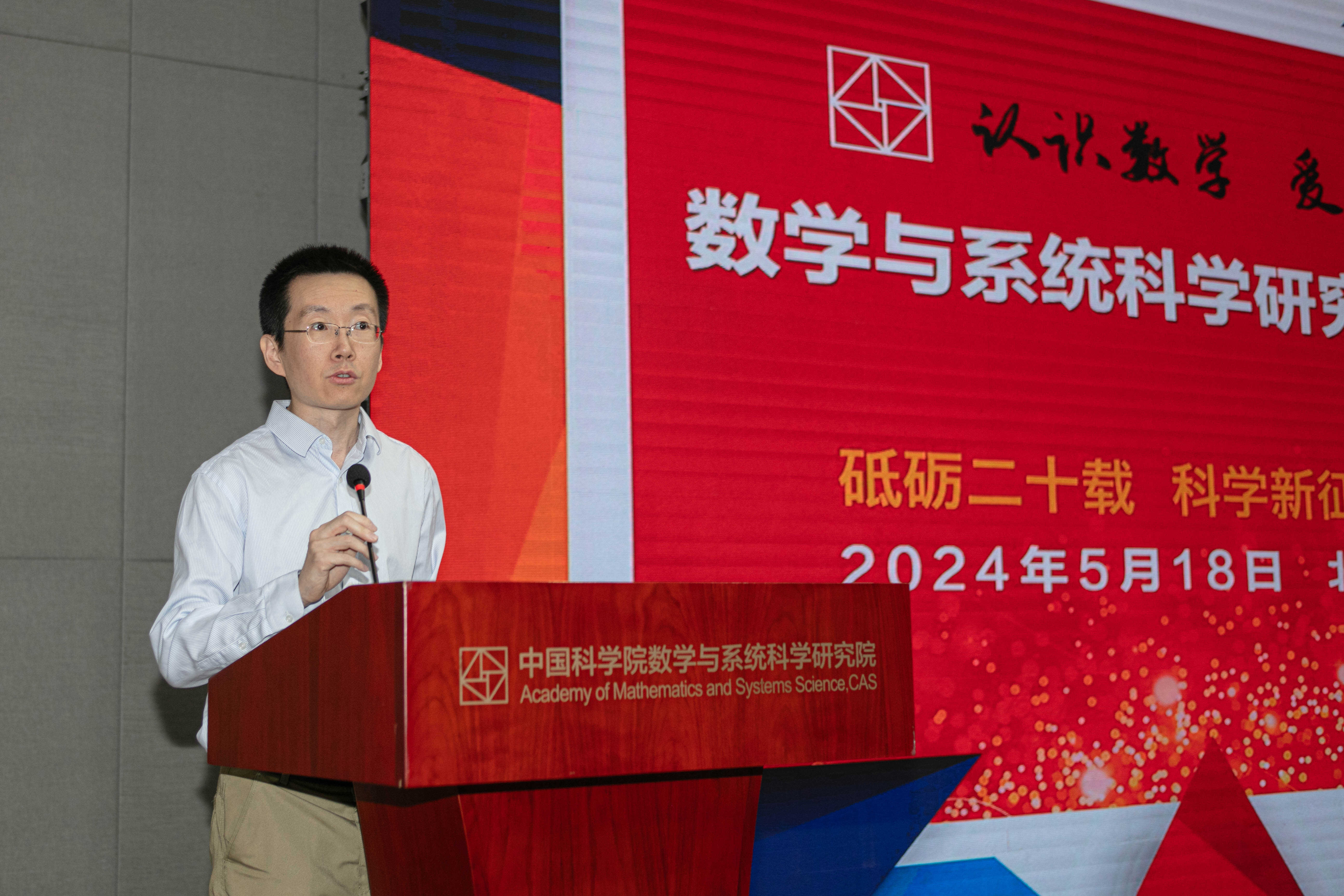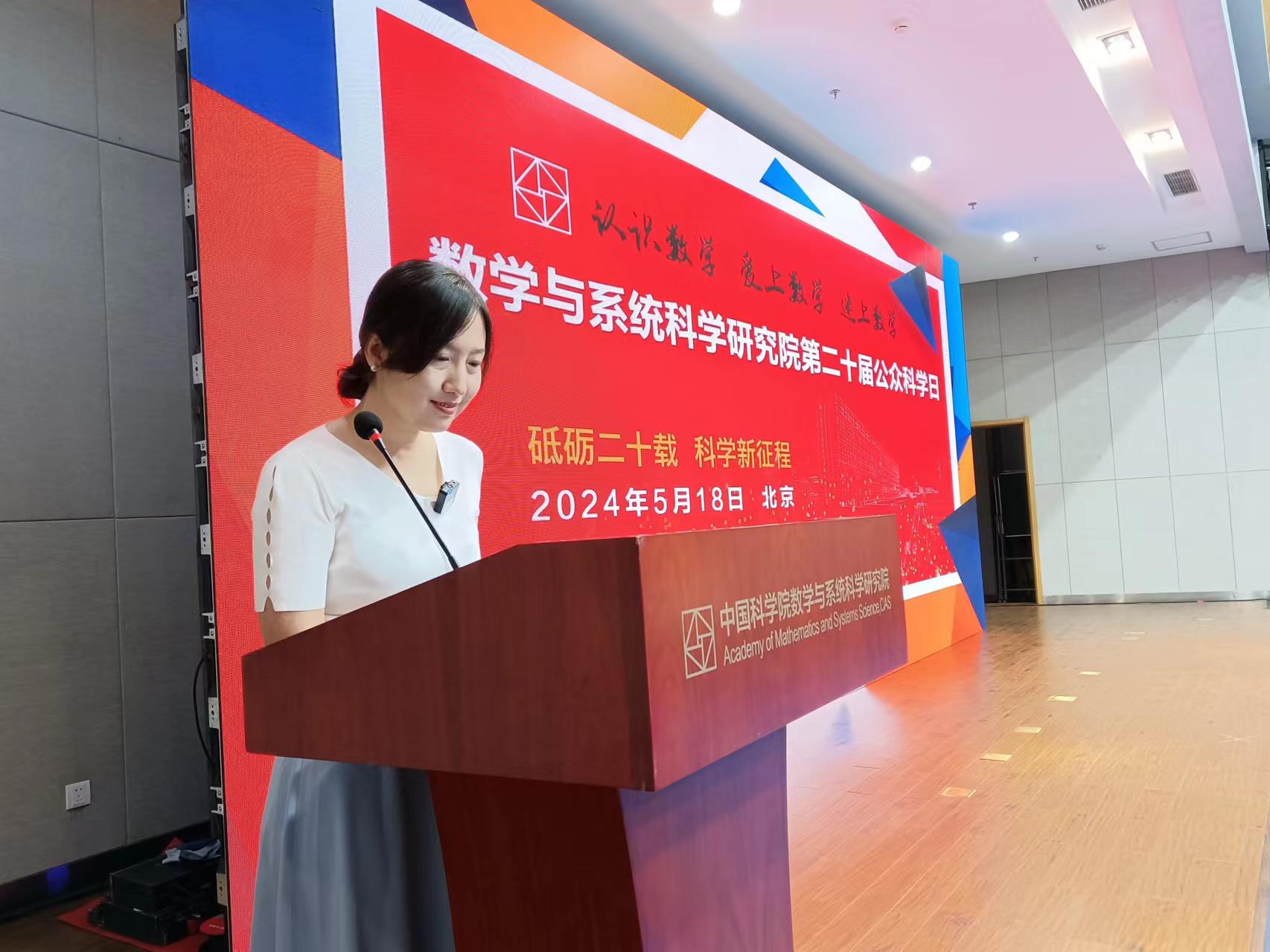5月18日,永利3044集团官网举办了以“砥砺二十载科学新征程——认识数学、爱上数学、迷上数学”为主题的“第二十届公众科学日”活动。此次活动旨在普及数学知识、展示数学魅力,激发公众对数学的兴趣和热爱。数学院院长张平院士、党委书记兼副院长武艰、党委副书记兼纪委书记王敬泽、副院长戴彧虹、周向宇院士及四所所领导等科研人员、管理人员出席活动。院务委员郑维喆研究员主持活动报告。这场关于数学科学的“盛宴”接待了近七千人次公众线下参观,并吸引了超过10万人次公众线上观看,为公众带来沉浸式的科学体验。