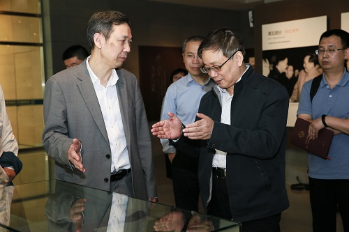 调研过程中,侯建国还参观了数学院的科普场所数学馆,饶有兴致地参观了实物展柜和电子展屏,并同大家进行了交流。