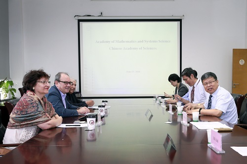 2018年6月25日上午,保加利亚科学院院长Julian Revalski教授、副院长Vassil Nikolov教授和秘书长Evdokia Pasheva教授来访数学院。数学院洪佳林副院长、潘建中院长业务助理、中国数学会副秘书长陈亦飞参加了座谈活动。