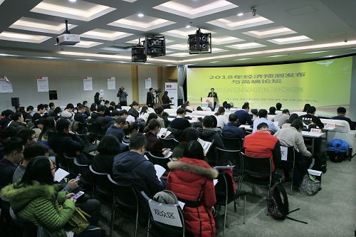 2018年1月18日,由中国科学院预测科学研究中心(以下简称预测中心)主办,中国经济网、科学出版社、中国科学院大学经济与管理学院协办的“2018年中国经济预测发布与高端论坛”在我院南楼召开。
