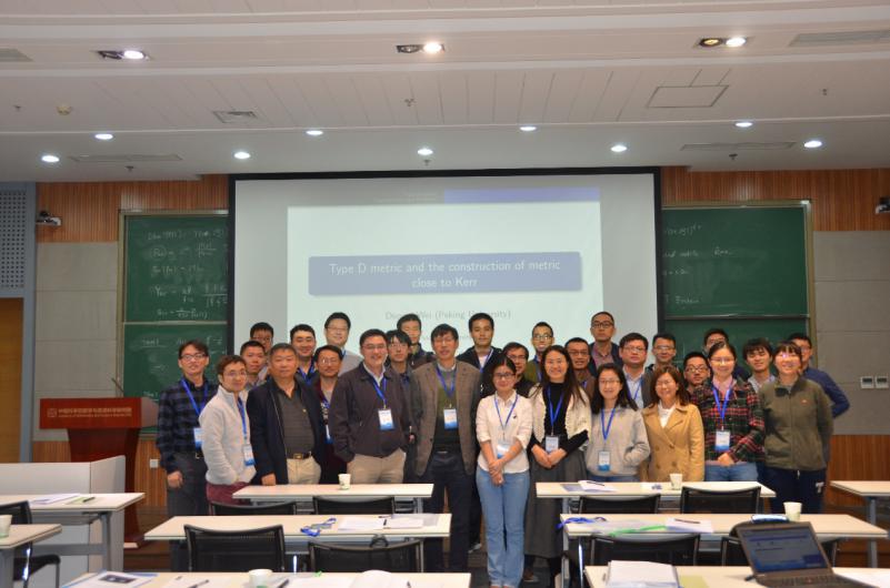 本次会议共组织了21个学术报告。与会学者报告了近年来该方向的许多重要进展。其中,安歆亮教授介绍了关于黑洞和奇异点形成的最新进展;冯仁杰教授介绍了随即矩阵方向的最新进展和问题;黎俊彬教授报告了关于引力塌缩方面的工作;王成波教授介绍了双曲空间中非线性波动方程的进展;王芳教授介绍了关于fractional GJMS算子比较定理方面的进展;韦东奕博士介绍了曲率Type-D条件和Kerr唯一性定理的关系;徐兴旺教授介绍了Einstein scalar filed Lichnerowicz equation方面的最新进展;谢纳庆教授报告了关于Hawking质量和Barnik质量估计的工作;杨诗武教授报告了Maxwell-Klein-Gordon方程组解的衰减性质。