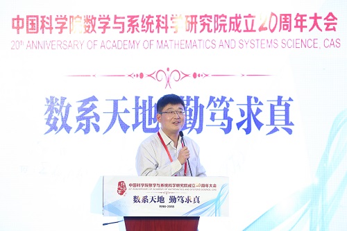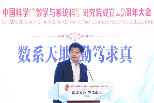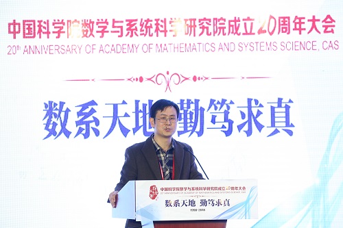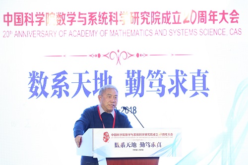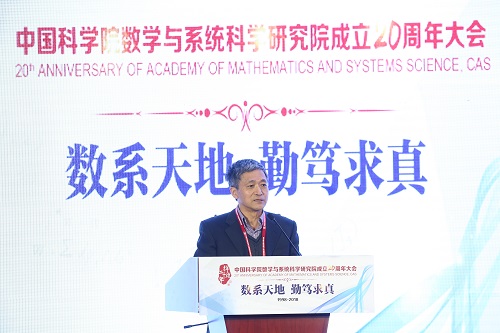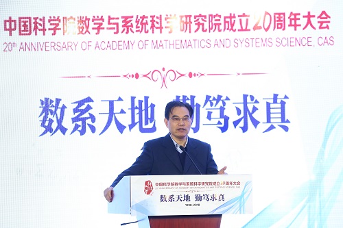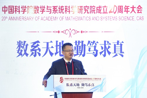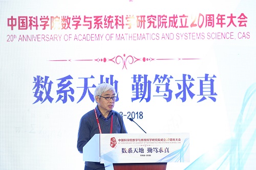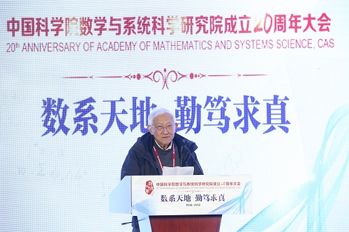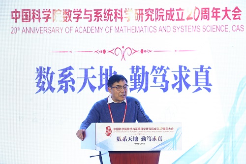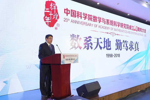 2018年12月28日上午,中科院数学与系统科学研究院(以下简称“数学院”)在北京举办成立20周年大会。王元、杨乐、万哲先、石钟慈、林群、陈翰馥、崔俊芝、马志明、陆汝钤、严加安、文兰、李邦河、郭雷、洪家兴、彭实戈、王诗宬、龙以明、张伟平、袁亚湘、席南华、徐宗本、陈恕行、周向宇、张平文、江松、陈志明、蔡荣根等院士,中科院兄弟院所和高校的代表,还有海内外的杰出院友代表,地方相关部门的代表、以及数学院的离退休职工、在职职工和研究生的代表等300余人,共聚一堂,共同庆祝数学院成立20周年。大会由数学院党委书记、副院长武艰主持。
