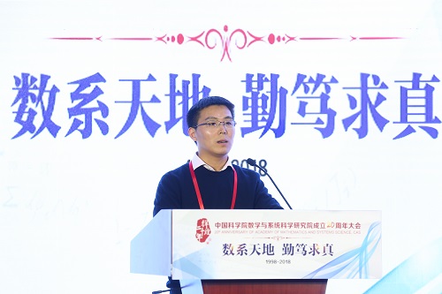 紧接着,数学院院长席南华院士作了“攀登与光荣”为主题的报告,首先从历史与现状方面,回顾了数学院作为首批中科院知识创新工程试点单位,由四所整合成立,并着重介绍了数学院现有的学术单元和学科方向,以及探索取得创新成果的领域等;接着,他分别从基础数学的重大难题、应用数学的关键共性方法和数学与系统科学交叉前沿三方面介绍了数学院二十年来取得的科研成果,同时也介绍了二十年来获得的国内外重要奖励奖项和开展的国际学术交流等;人才教育方面,一方面介绍了数学院现有科研人才情况,设立的人才计划,针对重大问题凝聚的研究团队,同时也强调了教育创新,建设一流数学人才培养基地,并探索数学学科高端人才培养的新模式;最后,他指出数学院非常重视体制文化,倡导创新理念融入制度体系,弘扬保持优良传统,并积极推进党的建设等。